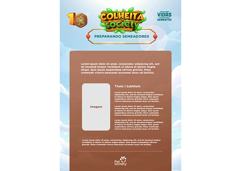 Em 2024, a campanha anual de vendas da Pet Society ganhou um novo nome e uma nova identidade: Colheita Society, um projeto de incentivo que acontece pela gamificação. Desenvolvemos a campanha completa, do nome ao planejamento, passando pela criação das peças. A abordagem inovadora tem gerado excelentes resultados para clientes e colaboradores.